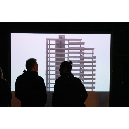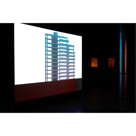 In der Videoinstallation legt die Künstlerin Noor Abed das bloße Gerüst der Architektur frei, um eine neue Beziehung zwischen dem weiblichen Körper, Bewegung und dem männlich geprägten Raum zu schaffen.