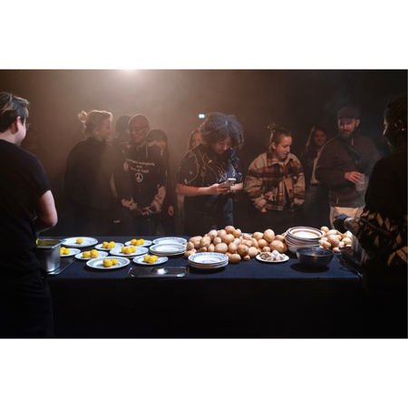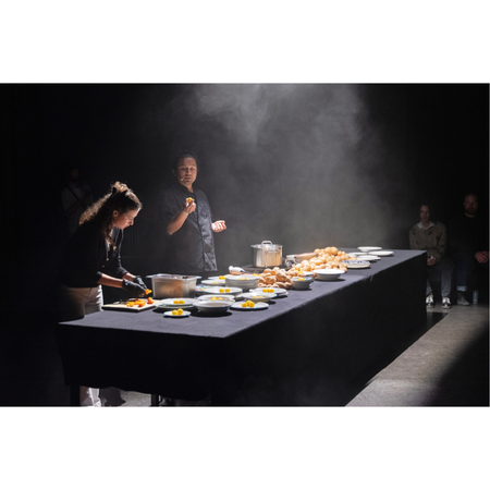 Das Performance-Installationsprojekt Celebrations stützt sich auf Wongs fortlaufende Forschung zu Lebensmitteln als Ort der Erinnerung, Migration und Identität. Die Performance erweitert diese Untersuchung, indem sie Erzählungen präsentiert, die – ähnlich wie die zubereiteten/präsentierten Gerichte – zum Verzehr bestimmt sind. Geschichten und Aromen entfalten sich gemeinsam und verwischen die Grenzen zwischen Sprache und Geschmack. So wird der Akt des Verzehrs zu einer gemeinsamen Erfahrung. Celebrations ist ein fortlaufendes Werk, das einen Dialog über unsere Unterschiede, Hintergründe und Überzeugungen anregt. Es bietet einen Raum, in dem wir unsere Geschichten in der angenehmen Atmosphäre eines gemeinsamen Essens vergleichen und gegenüberstellen können und so temporäre Begegnungsräume schaffen.